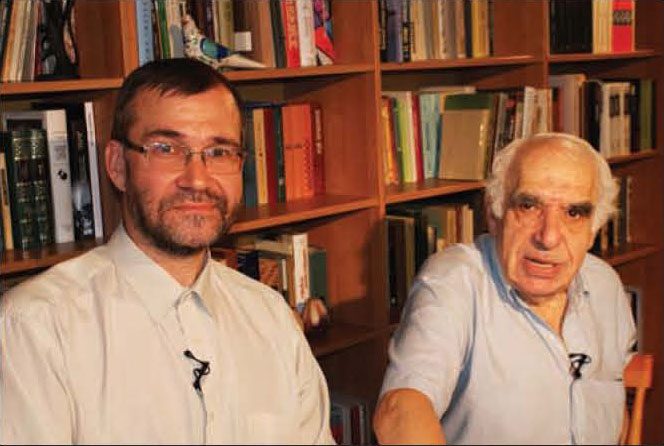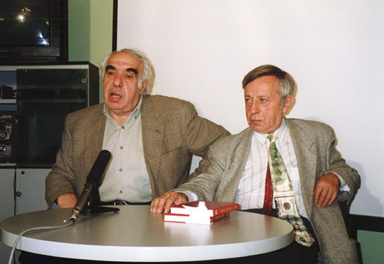 Евгений Рейн и Александр Глезер на вечере памяти Генриха Сапгира в Израильском культурном центре.
